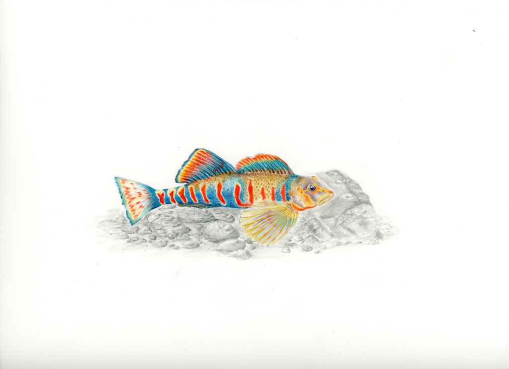 Candy Darter. Etheostoma osburni. Colored pencil and graphite.